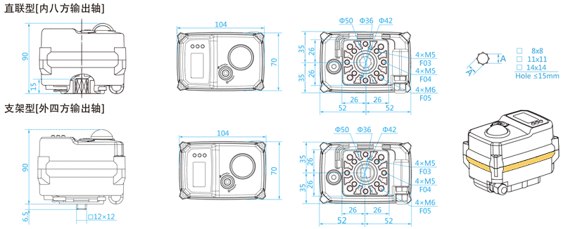RS485,CANBus2.0 Profibus 帶0.9/1.3寸OLED液晶屏 開關型帶PUL調速、PWM調速 總線開關型(ON、OFF、B33) 總線調節型,調節精度5‰ |