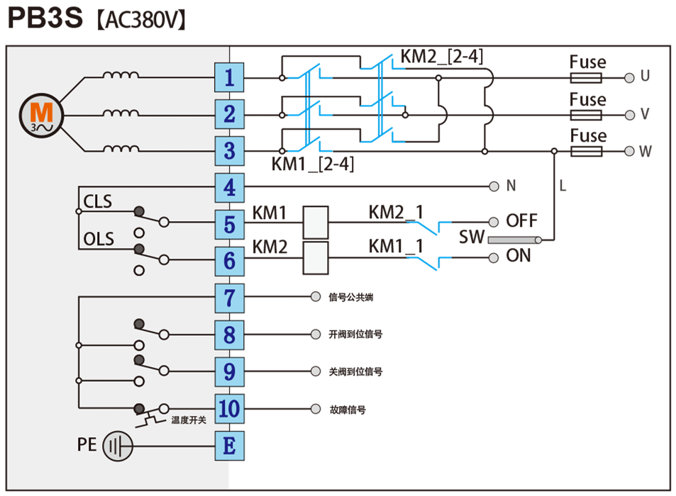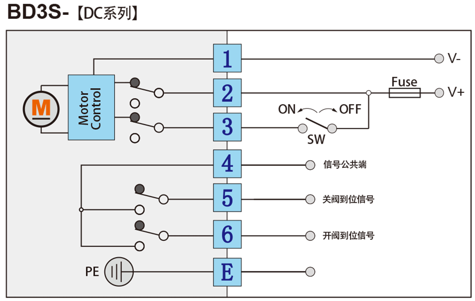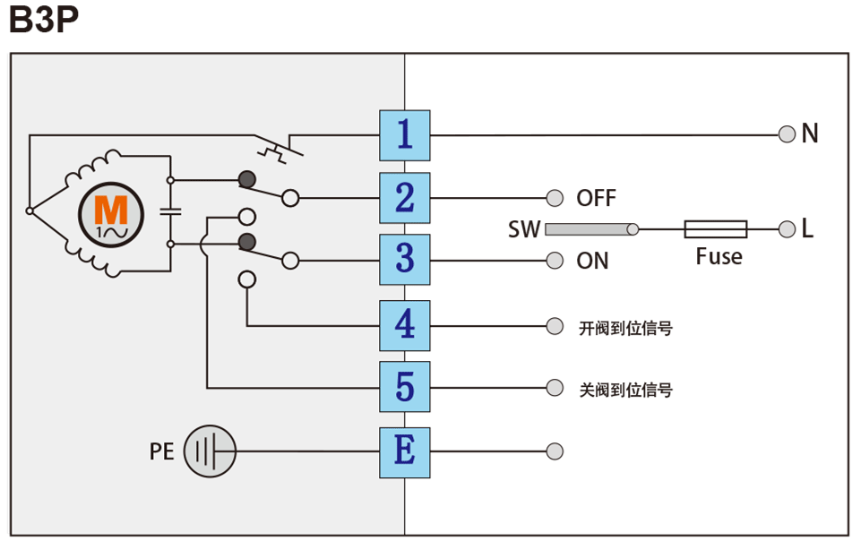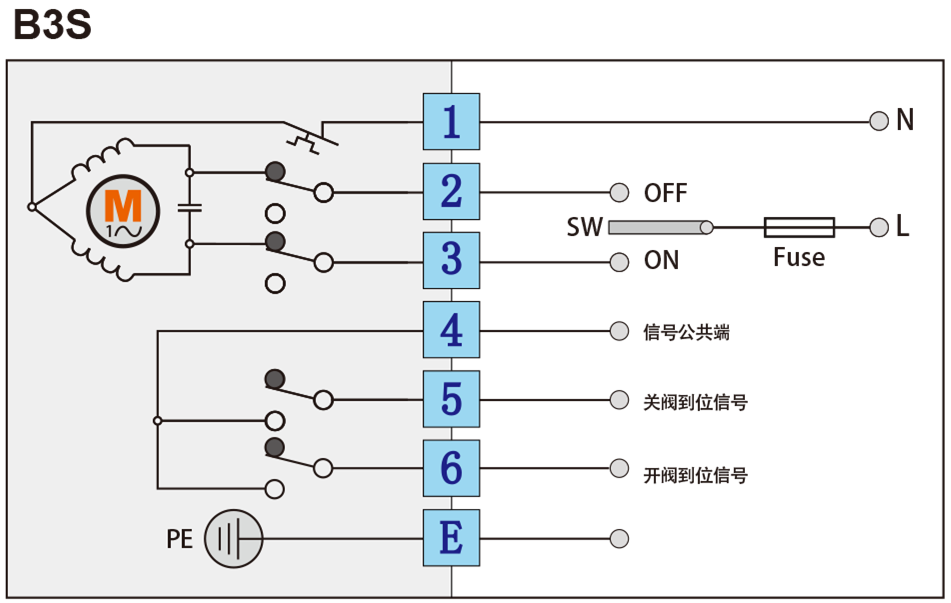 SW閉合,電動執(zhí)行器將逆時針旋轉(zhuǎn),到位后4與5接通,給出開閥到位信號。