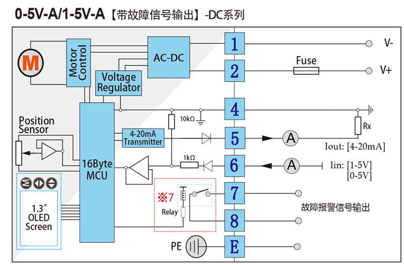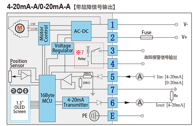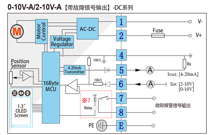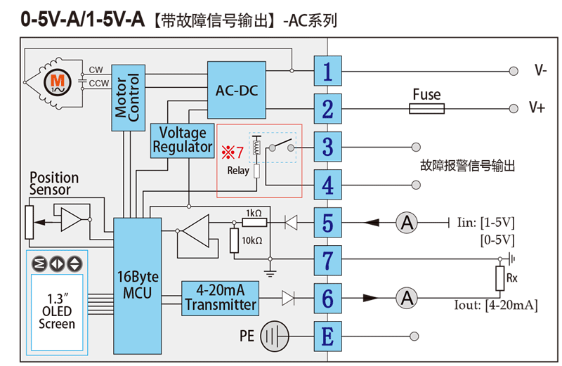 控制方式: 4-20mA、0-20mA、0-5V、1-5V、0-10V、2-10V