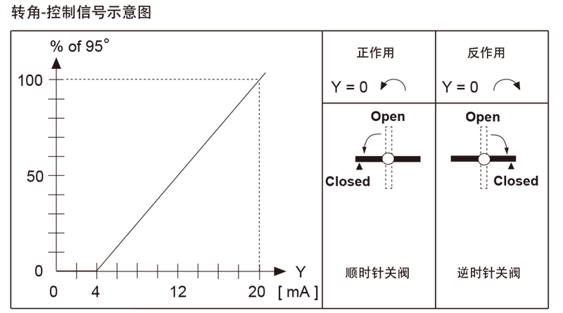 通過菜單可實現閥門控制命令4-20mA的邏輯交換。