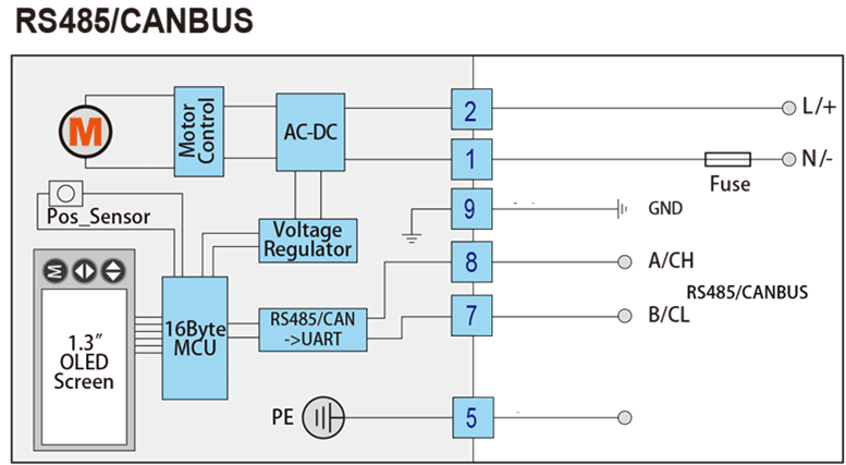 | 06/11B | 60/110Nm | AC/DC24V | 10s | RS485/CANbus 2.0B | 90°/180° | IP67 / F型 | 六角扳手 手動按鈕 | 機械指示 OLED顯示 | ABS+壓鑄鋁 | 內八方 |