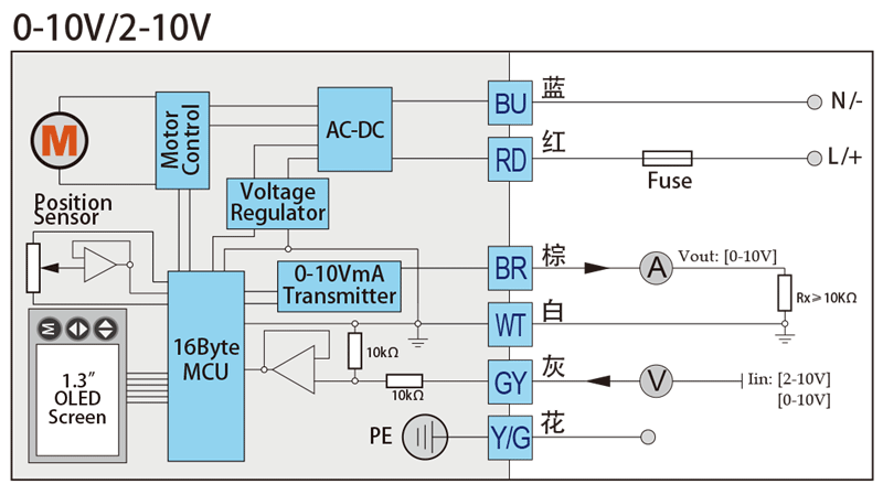 控制方式: 4-20mA、0-20mA、0-5V、1-5V、0-10V、2-10V