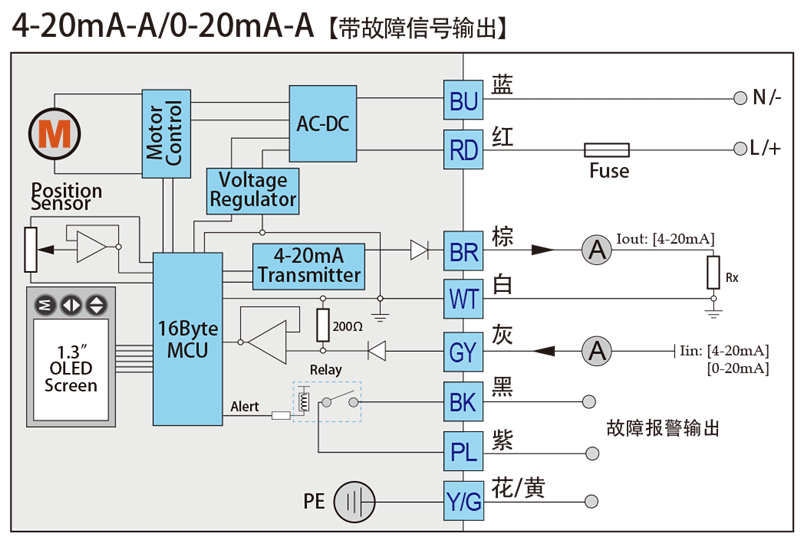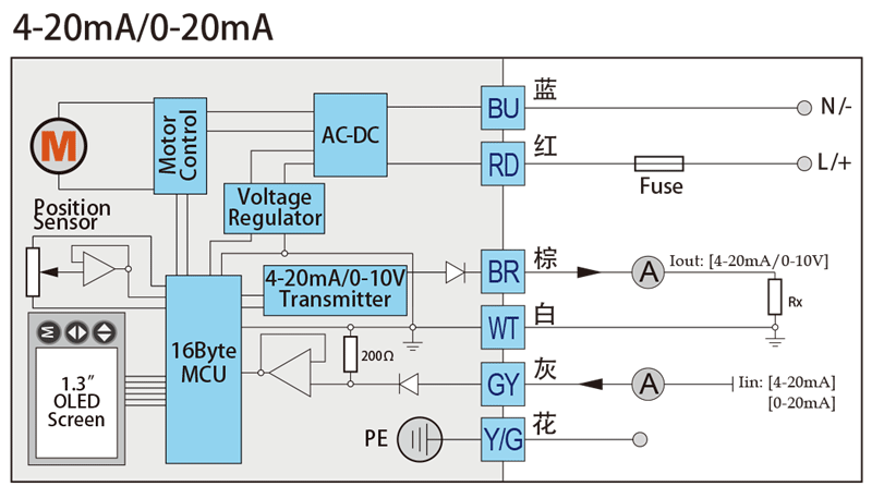 控制方式: 4-20mA、0-20mA、0-5V、1-5V、0-10V、2-10V